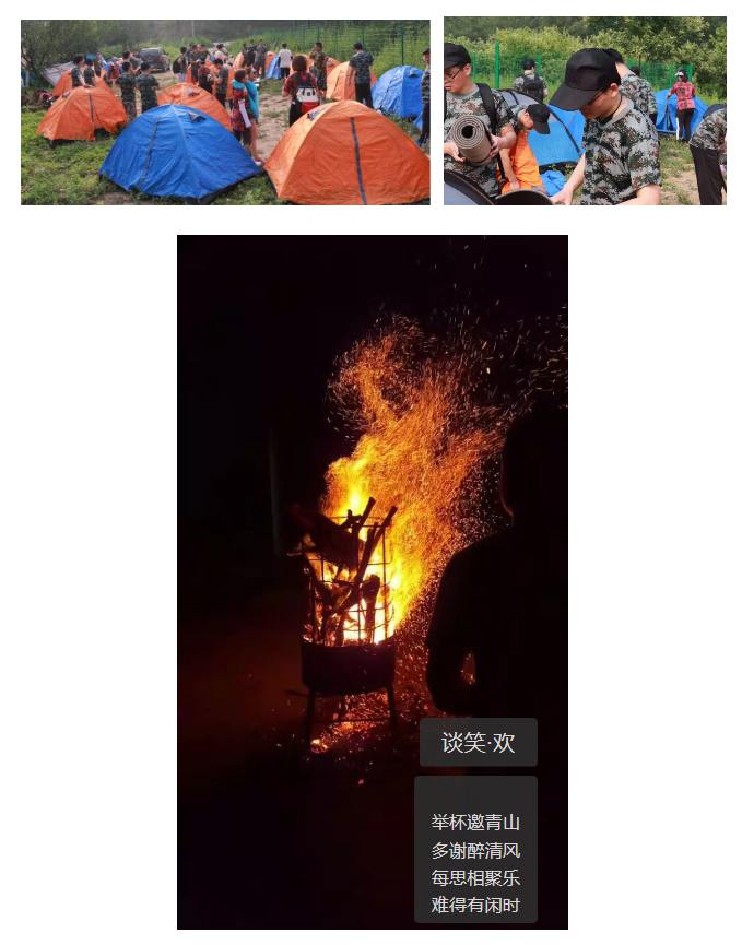 达到目的地以后,小伙伴们齐心协力,分工明确,开始搭建帐篷、准备食材、生火做饭,迎来美好的欢聚时光。