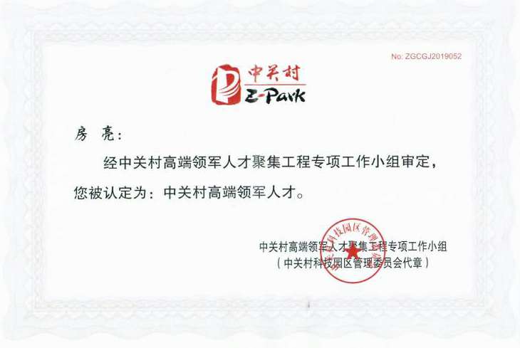这一次房亮博士获得2019年度中关村高端领军人才的殊荣,不仅是对房亮博士创业领军能力的认可,也是对国科安博电子官方网站_安博电子(中国)未来发展的认可。
