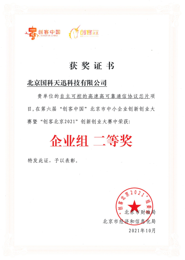 大赛自6月启动以来,受到广大中小企业和创客团队高度关注,吸引了全市近5千个项目报名。国科安博电子官方网站_安博电子(中国)参赛的“自主可控的高速高可靠通信协议芯片”项目,经初赛、复赛两个月激烈角逐,在众多项目中表现抢眼,成功入围新一代信息技术领域决赛,经路演获企业组百强,后与百家企业共同比拼及专家组评审后最终获此殊荣。